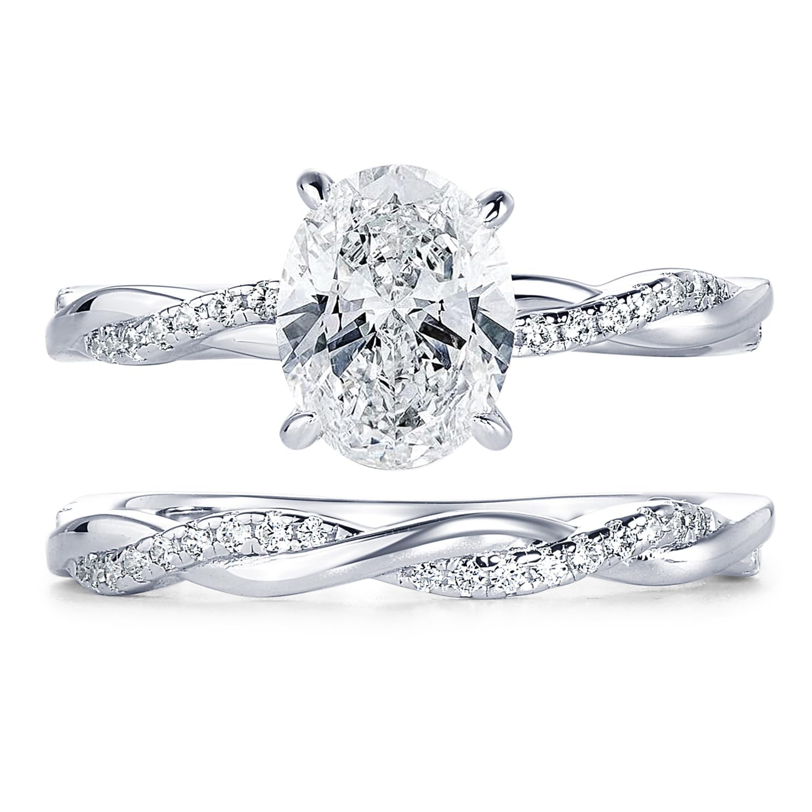 - Real Sterling Silver: Our oval cut bridal ring set is crafted in S925 sterling silver with 925 metal stamp and have passed vigorous quality inspection. The high polish sterling silver is finished with a coating of 18K white gold plated which prevents tarnishing and prolongs the life of the ring, making it a ring for your practical and keepsake.